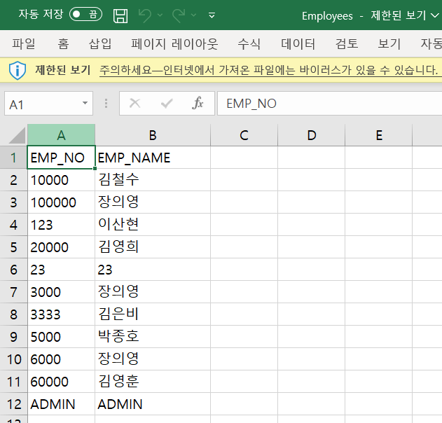 export위에 코드 밑에 별다른 작업이 없으면 한 줄 추가 해줍니다.XLSX.writeFile(workbook, "Employees.xlsx", { compression: true });