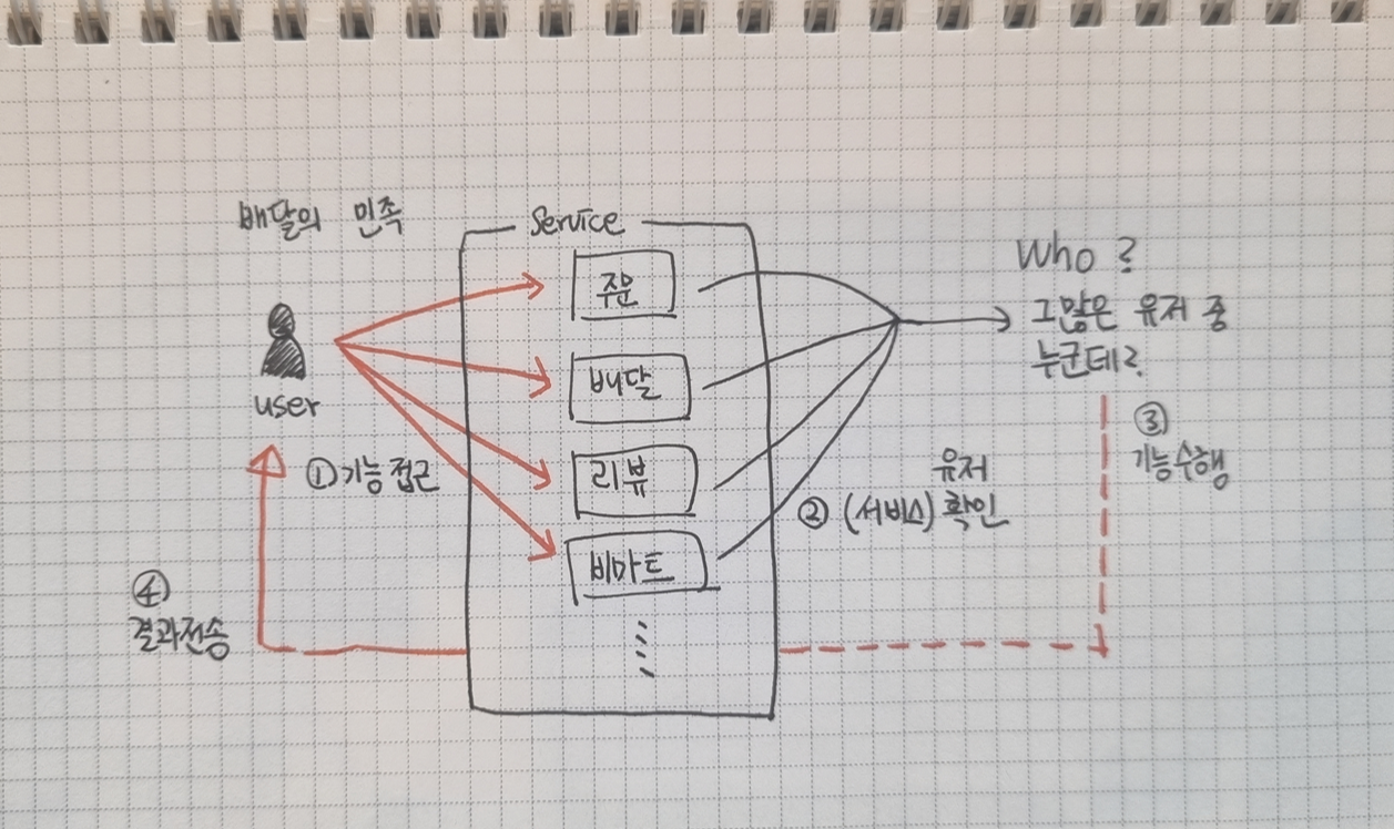 웹 앱 (시스템)에 접근하기 위해 나에게 부여된 아이디, 비밀번호를 통해서 회원 페이지의 접근 권한을 얻고 비회원은 접근할 수 없는 페이지에에 접근할 수 있을 것이다.