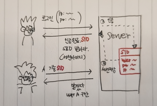 - 세션 로그인 방식은 쿠키에 sid (세션아이디)를 담아서 전송하게 될것이다.