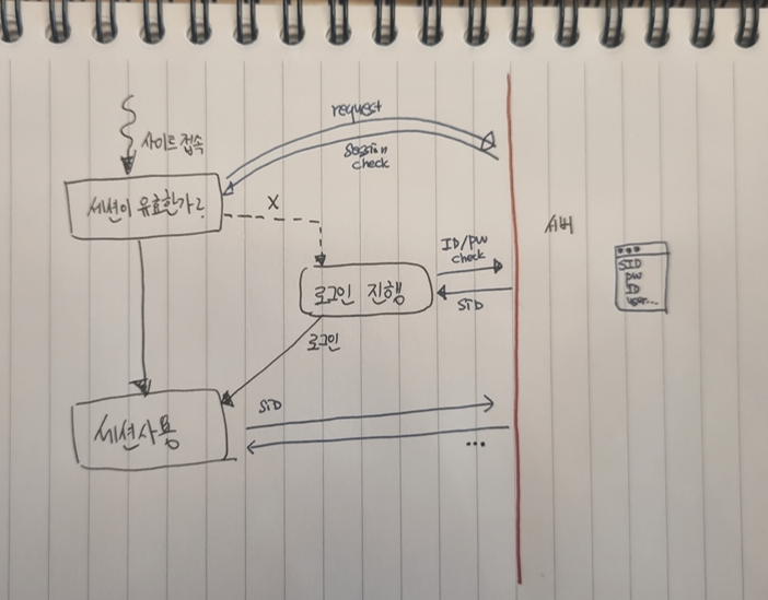 - 브라우저에 접속하면 세션이 유효한지(서버에서) 검증함