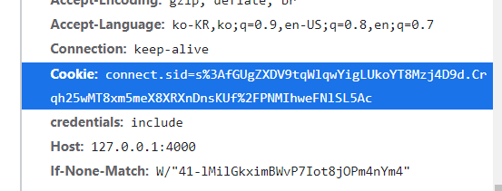 브라우저에 쿠키를 저장하는 방법은 …. 서버에서 발급된 sid로 자동으로 담아 진다. 서버에서 응답이 올때 Set-Cookie