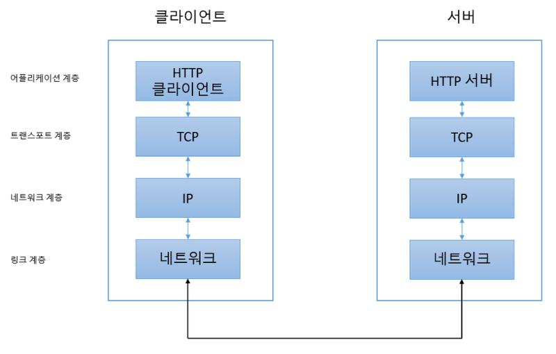 - 수신측 서버는 링크 계층에서 데이터를 받아들여 순서대로 위의 계층에 전달하여 애플리케이션 계층까지 도달함.