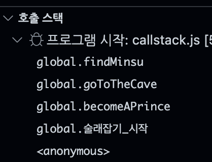 현재 호출한 함수와 함수의 인자와 어디서 함수 실행이 마무리되는지 저장한다.
