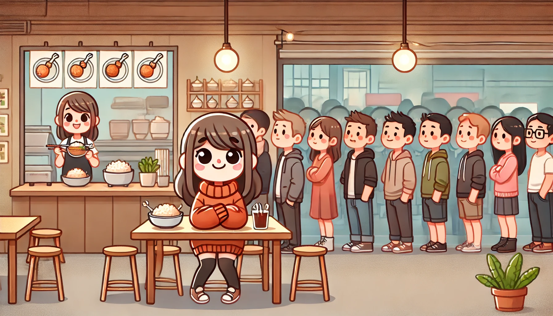 예를 들어 당신이 식당에 갔는데 손님을 하나만 받을수 있는 식당에 가서 20명 이상 대기가 있는 상태이다.