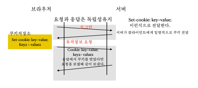 - 따라서 상태를 계속 유지하고 싶은 욕구에 부응하기 위해서 쿠키라는 기술이 도입됐음